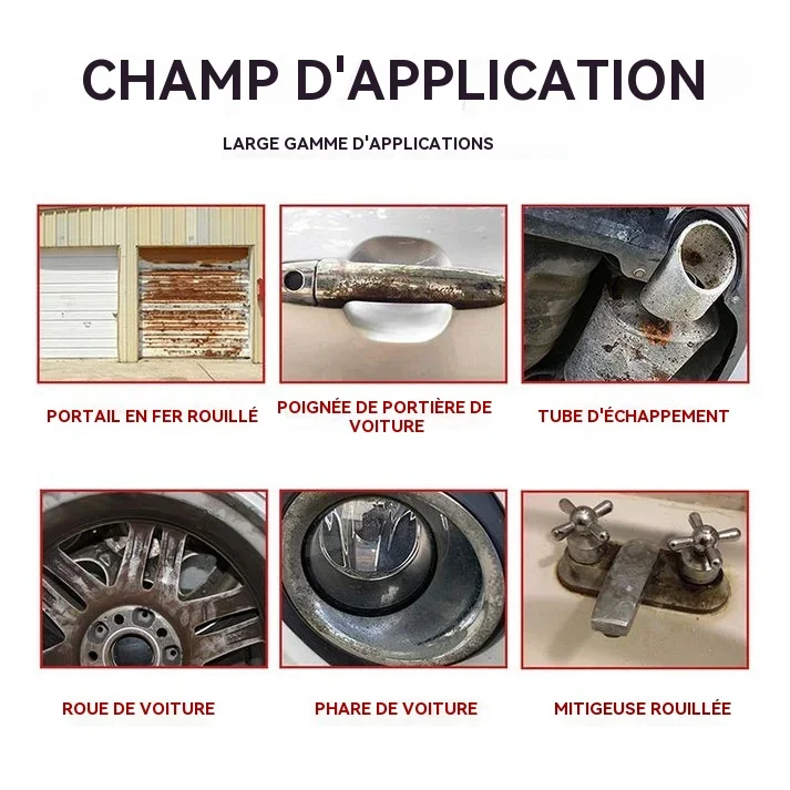 REDONNEZ DE L'ÉCLAT À VOTRE VOITURE : La solution ultime pour restaurer et protéger les surfaces métalliques de votre voiture contre les effets néfastes de la rouille. Cette solution puissante élimine efficacement la rouille et la corrosion sur diverses surfaces métalliques, redonnant ainsi à votre véhicule son aspect d'origine et le protégeant contre d'autres dommages.
