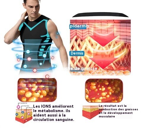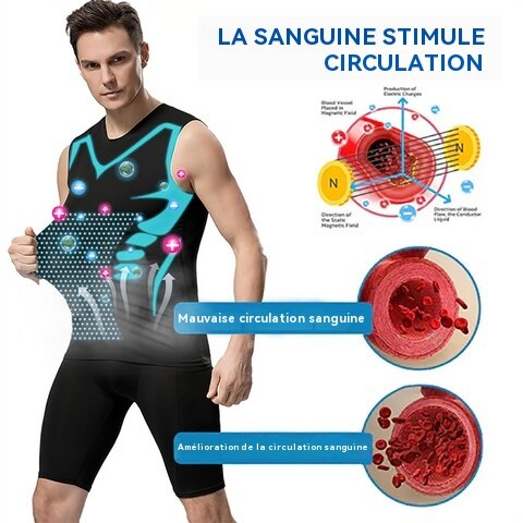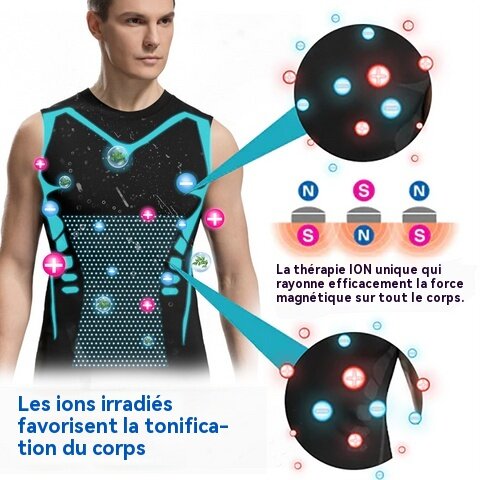 Le T-shirt sculptant thérapeutique ionique utilise des fibres de graphène de pointe et des nanoparticules magnétiques pour stimuler la régénération cellulaire, la fonction nerveuse et la circulation sanguine. Il contribue également à améliorer la santé du dos et la posture, en combinant les bienfaits des champs magnétiques statiques et de l'absinthe.