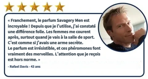 Notre  parfum Savagery aux phéromones pour hommes  utilise une  formule unique  et une technologie de fixation innovante  pour  amplifier le parfum et la puissance de vos phéromones . Ses molécules aromatiques  stimulent le nerf olfactif ,  créant un sillage corporel unique  et  vous aidant à   séduire  les femmes avec plus d'efficacité . Avec ce parfum, vous ferez une impression inoubliable.
