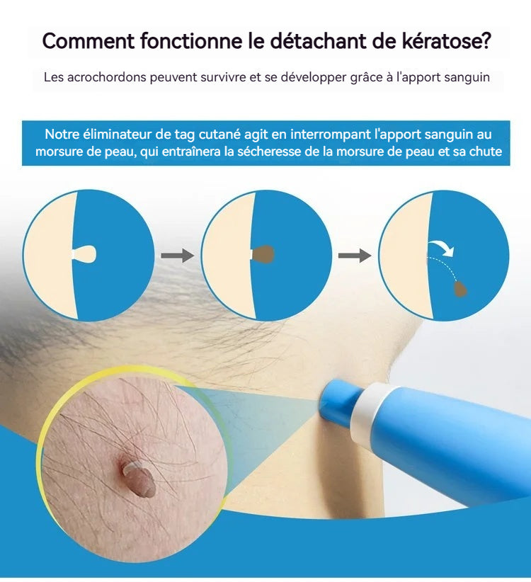 « Ce matin, j'ai remarqué que ma petite excroissance cutanée était tombée complètement sous la douche ! La zone est lisse, sans douleur ni cicatrice . Je n'en reviens pas comme c'était facile : pas de consultation coûteuse chez le dermatologue, aucune gêne, juste une peau nette ! Je recommande vivement cette méthode à toutes les personnes qui ont des excroissances cutanées. »