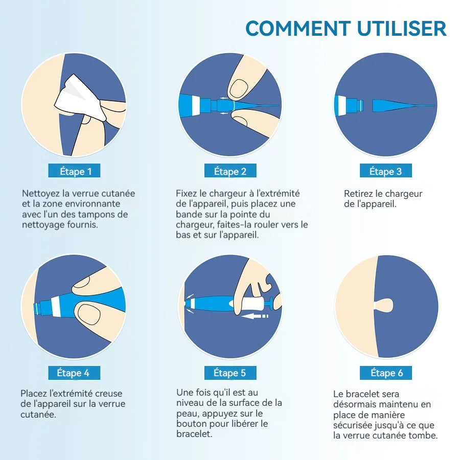 « J'étais nerveuse au début, mais le processus a été étonnamment simple et indolore . J'ai suivi les instructions, nettoyé la zone et appliqué le petit élastique autour de la petite excroissance cutanée à l'aide de l'appareil. Je n'ai ressenti aucune gêne , juste une légère sensation de resserrement. Maintenant, j'attends de voir le résultat ! »