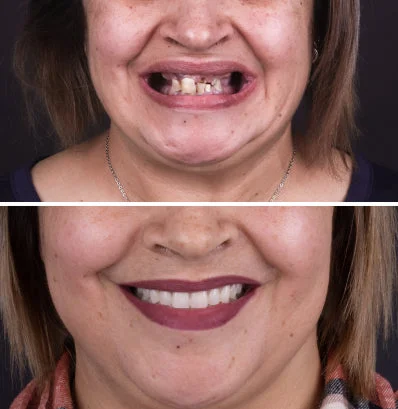 « J'ai toujours été gourmande, et je dois avouer que je ne me brossais pas les dents régulièrement. Finalement, ça a eu des conséquences : mes dents se sont cariées et j'ai développé une maladie des gencives. J'ai commencé à avoir honte de mon sourire, surtout quand mes amis se moquaient de moi. Me faire poser ce dentier a été la meilleure décision que j'aie prise. Il est bien ajusté et a un aspect naturel. Je n'ai plus peur de sourire, et ça m'a redonné confiance en moi ! » - Lillian Kilroy